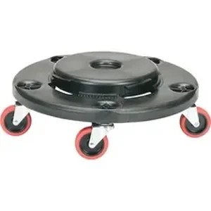 Transport fully loaded round trash cans securely, even on rough or uneven surfaces, with this five-wheel round dolly. Twist lock holds 20-gallon to 55-gallon trash containers securely in place during transport yet unlocks easily for loading. Load capacity is 350 lb. All-plastic construction resists rust, chipping and dents. Wheel design eliminates 88 percent of dolly noise. This Quiet Wheel model dolly has a base constructed of at least 30 percent post-consumer recycled content.