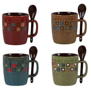 COFFEE MUG SET INCLUDES 4 cups ( 14 oz each ) and 4 spoons, Assorted colors