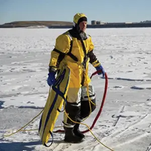 The Imperial IR1500 Ice Rescue Suit is designed for extreme cold weather operations. Constructed from a breathable, easy-to-repair shell fabric with reinforced Cordura areas, this suit ensures durability and functionality. It has been developed with direct feedback from public safety agencies to offer a user-friendly and robust solution for ice rescue missions.