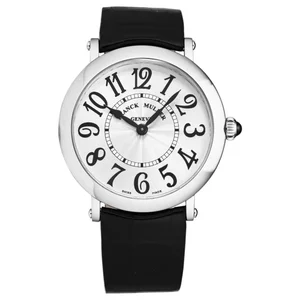 Franck Muller 8041QZVAVSIL Men's 'Round' Silver Dial Black Leather Strap Swiss Quartz Watch Franck Muller 8041QZVAVSIL Men's 'Round' Silver Dial Black Leather Strap Swiss Quartz Watch features a Stainless Steel, 41mm case, a silver-tone dial, and sapphire crystal . The leather band is fitted with a tang clasp. This beautiful wristwatch is powered by a Swiss quartz movement. This watch has a water resistance of up to 30 meters, not suitable for long periods of recreational swimming and also diving or snorkeling. Features: Brand: Franck Muller Model number: 8041QZVAVSIL Dial Shape: Round Dial window material type: Sapphire Display Type: Analog Case Material: Stainless Steel Clasp: Tang Clasp Case diameter: 41 millimeters Case Thickness: 8.5 millimeters Band Material: Leather Band length: 8 inches Band width: 21 millimeters Band Color: Black Dial Color: Silver-tone Bezel Material: Stainless Steel Special features: Stainless Steel, Leather Movement: Swiss Quartz Water-resistant depth: 30 meters/100 feet UPC: Franck Muller 8041QZVAVSIL MSRP: $7,600