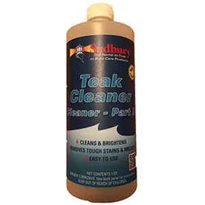 Sudbury® Teak Cleaner is an easy-to-use, two-step teak cleaning process. It makes weathered teak decking and trim a beautiful golden teak color. Sudbury® Teak Cleaner works without the need for expensive, time consuming, and destructive sanding.