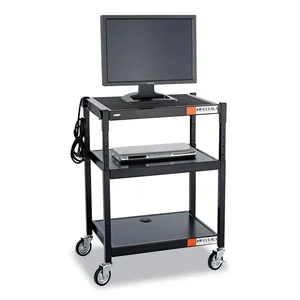 This adjustable-height steel AV cart provides a versatile solution for transporting and displaying audiovisual equipment. With dimensions of 27.25 inches wide by 18.25 inches deep, and an adjustable height range from 28.5 inches to 36.5 inches, this black cart is perfect for classrooms, offices, or presentations.