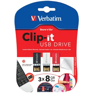Verbatim 98674 (R) 98674 8GB Clip It USB Drives, 3 pk