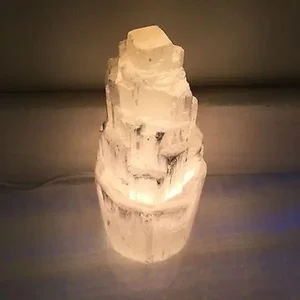 The Small Selenite Skyscraper Lamp is a unique and elegant lighting addition to your space. Crafted from natural selenite crystals, it creates a calming ambiance that promotes inner peace and clarity. With its ability to cleanse other crystals and its association with the crown chakra, this lamp not only serves as decor but also enhances your meditation and spiritual practices.