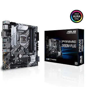 ASUS Prime Z490M-PLUS LGA 1200 (Intel 10th Gen) micro ATX motherboard (dual M.2, DDR4 4600, 1 Gb Ethernet, USB 3.2 Gen 2 USB Type-A, Thunderbolt 3 support, Aura Sync RGB). The ASUS Prime Z490M-PLUS is expertly engineered to unleash the full potential of 10th Gen Intel Core processors. Boasting a robust power design, comprehensive cooling solutions and intelligent tuning options, the ASUS Prime Z490M-PLUS provides daily users and DIY PC builders a range of performance tuning options via intuitive software and firmware features.