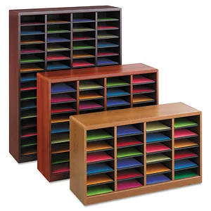 Safco Products 9331CY Cherry Literature Organizer with 60 Slots - E-Z Stor Sorter