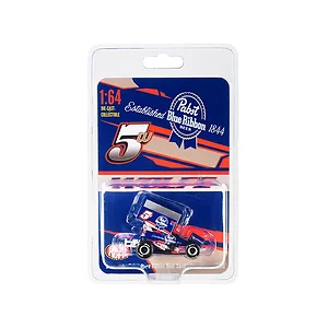 This 1/64 scale diecast model prominently features the Winged Sprint Car #5w driven by Lucas Wolfe, showcasing the iconic Pabst Blue Ribbon Beer livery. An ideal collectible for motorsport fans, this model captures the spirit of racing with its authentic detailing.