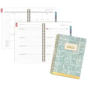Plan every event, deadline and more with the Badge Hand-Drawn Geo Weekly Monthly Planner. With spacious spreads, areas to track goals and a bold geometric cover, you can stay organized and on track all year long. High-quality paper features superior ink bleed-resistance for a premium writing experience. Dated planning pages range 13 months from January to January. Two-page-per-week spreads include ruled daily entries and sections for goals and notes. Tabbed, two-page-per-month format offers unruled daily blocks, Sunday-to-Saturday schedule, holidays and past and future months reference. Special pages include a holiday list, seven contacts, six notes, three-year reference calendar, event calendar and a double-sided poly pocket to store loose sheets. Durable poly cover stands up to wear and tear. Gold twin-wire binding prevents snags and keeps pages secure.