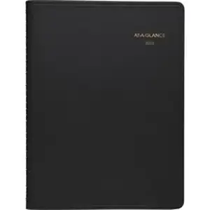 Weekly appointment book offers classic styling and all of the planning basics that make this a great scheduling tool for any busy professional. Dated planning pages range 13 months from January to January. Two-page-per-week spreads include ruled daily columns, Monday-through-Sunday scheduling, quarter-hourly appointment times from 7 AM to 8:45 PM on weekdays and 7 AM to 5:30 PM on Saturday, ruled area for Sunday, count of days/days remaining, numbered weeks, holidays, and past, current and two future months reference. The current reference month is boxed, and the current week is highlighted for easy identification. Wire-bound, nonrefillable appointment book has a simulated leather cover and telephone/address pages.