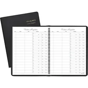 Visitor registration book offers space for 900 visitors with 60 sheets of white ledger paper and 15 entries a page. Each page has a space for the name, company, arrival time and departure time. Wire binding allows pages to lie flat for easy use. Nonrefillable.