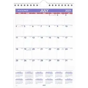 Stay focused and organized all year long with this academic schedule wall calendar. Large daily blocks make it easy to keep track of upcoming appointments, important events and more. Dated pages range 12 months from July to June, making it the perfect resource for teachers and other professionals accustomed to making plans over this time frame. One-page-per-month format features ruled daily blocks (2" x 1-3/4") for neat, easy-to-read notes as well as Sunday-through-Saturday scheduling, count of days/days remaining and holidays. Each monthly page includes a full-year calendar reference across the bottom. High-quality paper features superior ink bleed-resistance. Calendar is wire-bound with a hanging loop for easy wall display.