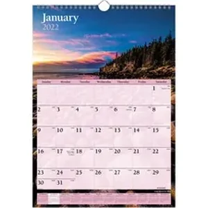 Organize office events, meetings and appointments with this calendar that offers a different, stunning scenic image each month. Wall calendar offers 12 months of dated planning from January to December. One-page-per-month format contains ample writing space in unruled daily blocks (1-1/2" x 1-1/2"), Sunday-through-Saturday scheduling, count of days/days remaining, holidays and monthly reference calendars with one past, current and 10 future months reference. Background design and color scheme coordinate with each image. Wall calendar includes full chipboard backer and bonus page with current yearly reference calendar in back. The wire hanger and loop simplify hanging on walls or cubicles. Calendar is printed on quality paper.