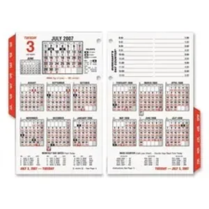 Daily refill for Burkhart's Day Counter features a complete financial calendar that counts days forward in 30-day periods for a year. Use pages to compute interest, elapsed time on notes and maturity dates. Dated refill ranges 12 months from January to December and includes monthly tabs, call-loan table, monthly loan table and 30-day period table, three years of advance planning, and U.S. Federal and Canadian holidays. Each two-page-per-day spread includes a previous month block on every page and a full year's reference. Half-hourly appointment slots range from 8 AM to 5:30 PM. Calendar refill fits E58-style base.