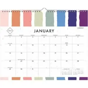 Make an eco-conscious choice with the 100 percent recyclable, Cambridge GreenPath Monthly Wall Calendar. Made using recycled materials, this calendar promotes both environmental sustainability and personal organization. Dated planning pages feature colorful, painted stripes at the top and range 12 months from January to December. One-page-per-month includes unruled daily blocks (2-13/16" x 2-3/16") for open scheduling, Sunday-through-Saturday scheduling, holidays, and past and future months reference for quick date-checking. Silver twin-wire binding keeps pages secure and has a built-in hanging loop for easy wall display.