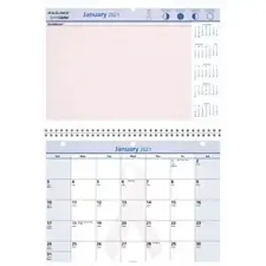 Desk/wall calendar supports the fight against breast cancer and offers two-page-per-month spreads, wire binding, an eyelet for hanging and three-hole punched pages for binder use. A portion of the proceeds will be donated to the City of Hope for breast cancer research, treatment and education. Dated planning pages range 12 months from January to December. One page features a QuickNotes writing area for extra notes, long-range planning, to-dos, the moon phases, and past, current and three future months reference along the side. The other page offers a monthly calendar with Sunday-through-Saturday scheduling, unruled daily blocks (1-1/4" x 1-1/4"), federal holidays in red, and count of days/days remaining. Both pages have pink accents and the iconic pink ribbon for breast cancer awareness.