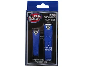 Maintain perfectly groomed nails with the Elite For Men Blue Nail Clipper Set. This set includes two clippers: a compact one for fingernails and a larger one for toenails, both designed with soft touch grips for enhanced comfort and control. The vibrant blue color adds a stylish touch, while the non-slip textured surface ensures a secure hold during use. Perfect for at-home grooming or travel, these clippers make self-care easy and efficient. The set arrives neatly packaged in a durable plastic box with a convenient die-cut for easy handling.
