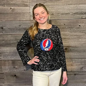 Jayli Imports AB165GDWTop:AB165GD-S DARK STAR TOP Black Cotton Long Sleeve with Unique Print