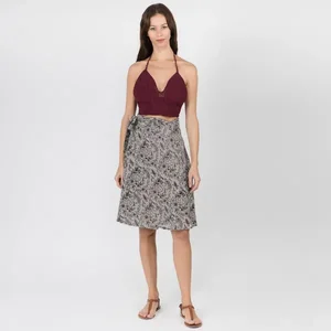 The MYRA SKIRT is a stylish Floral Print Midi Wrap Skirt that's versatile and flattering for any body type. This one-size wrap skirt can be worn low on the hips for an elongated appearance or hiked up to the waist for a chic and shorter look. Get creative – wear it around your chest with a belt for a trendy mini dress or a fashionable long top. The skirt showcases exquisite hand-print work, crafted from luxuriously soft fabric that enhances comfort and style. Pair it with your favorite tops for a coordinated look!