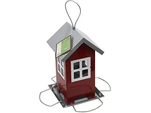 With multiple viewing windows, you can enjoy watching various bird species as they visit. The removable roof makes it easy to refill with bird seeds, ensuring a continuous supply for your feathered friends. This feeder is designed for smaller birds such as finches, wrens, and chickadees and can be hung from a tree or mounted on a post. Its compact dimensions of approximately 7.5" x 4.75" x 4.75" (with a base size of 8" x 8" when the perch is extended) make it a charming addition to any outdoor setting.