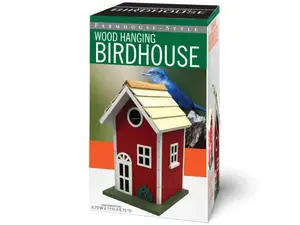 Packaged securely in a color shelf box, this birdhouse measures approximately 6.75" x 11" x 6.75".