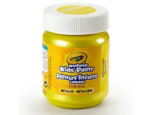 Bring your creative projects to life with Crayola's Yellow Gold Metallic Washable Kids Paint. This vibrant, shimmering paint is designed specifically for children and washes easily from skin and most clothing. Perfect for arts and crafts, school projects, and fun at home.