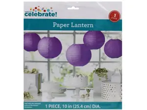 Add a charming touch to your celebrations with our 10" purple decorative paper lantern. Ideal for parties, weddings, or festive decor, these lanterns create a warm and inviting atmosphere. Hang them indoors or outdoors to enhance your event's aesthetic.