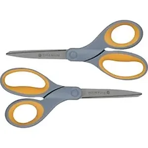 Scissors feature high-performance, titanium-bonded blades that provide three times the strength of stainless steel and resist corrosion. Blades also resist the stickiness of tape and glue. Scissors are ideal for paper, cardboard, lightweight line, fabric and other materials. Straight handles have a contoured soft grip.