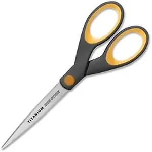 7" scissors feature titanium-bonded blades with a unique nonstick, permanent coating. Blades stay sharper longer and resist adhesives from tapes and glues. Use scissors to cut tape, hook-and-loop fasteners or other adhesives. Titanium blades are five times harder than stainless steel. Straight handles are made with plastic along the exterior perimeter and rubber along the interior grip for comfort. Use for right-handed or left-handed cutters. Scissors are ideal for the mailroom, art room and scrapbooking.