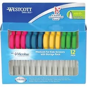 5" pointed scissors in the Class Pack are designed for children ages 6 and up. Ideal for cutting projects at school or home. Design features stainless steel safety blades with pointed tips and straight plastic handles. Handles are infused with antimicrobial product protection to inhibit the growth of bacterial odors. Stainless steel blades are corrosion-resistant. Scissors are designed for left-handed or right-handed cutters.