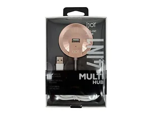 Introducing the iJoy 4-in-1 Hub in elegant rose gold, your ultimate multi-port charging and syncing device. Compatible with all popular operating systems, this compact hub is perfect for on-the-go use. It features four ports capable of high-speed syncing and charging, making it an efficient choice for your devices.