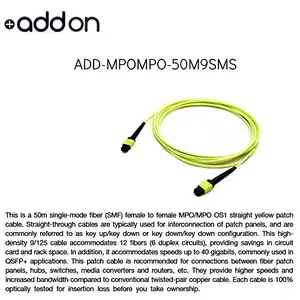 Addon ADD-MPOMPO-50M9SMS THIS IS A 50M MPO (FEMALE) TO MPO (FEMALE) 12-STRAND YELLOW STRAIGHT RISER-RATED