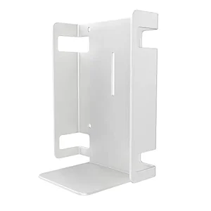 This sanitizer bottle holder is designed for mobile floor stands and comes in a clean white finish. It provides a stable and convenient way to keep hand sanitizer accessible in high-traffic areas.