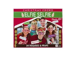 Capture and share the festive spirit by snapping playful photos and posting them on social media with the hashtag #elfieselfie. The props come neatly packaged in a clear plastic box with a visually appealing panel, measuring approximately 9" x 7". Get ready for unforgettable holiday moments!
