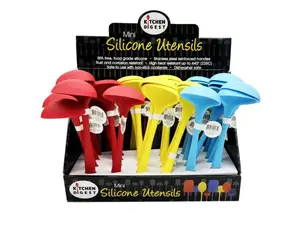 The set includes a countertop display featuring 24 silicone ladles in vibrant colors: red, yellow, and light blue.