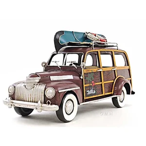 Old Modern Handicrafts Inc Omh AJ017 1947 Chevrolet Suburban Wagon Model with Canoe - 1:14 Scale