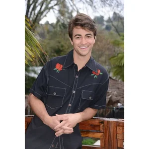 Introducing the iconic Grateful Dead Skull & Roses Short Sleeve Shirt, crafted from soft cotton for ultimate comfort and style. This unique men's shirt features stunning double rose embroidery on the front and a bold skull and roses design on the back. With a relaxed fit, front pockets, and stylish coconut buttons, it's perfect for fans of the legendary band.