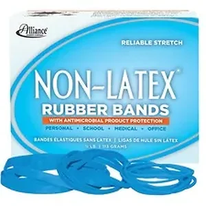 Rubber bands inhibit the growth of fungi, molds and bacteria. Nonlatex synthetic rubber has the added benefit of an antimicrobial agent. They are recommended for home, school, workplace and medical facilities. Bright cyan color allows easy identification.