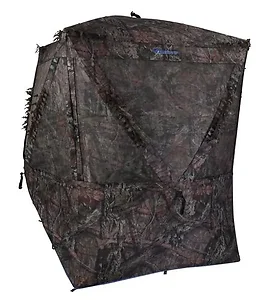 Haven Blind Mossy Oak Break Up Country Camo Seven feet tall allows for standing down shots Integrated camo brush loops for adding local foliage Offset hub allows windows to be configured for sitting or standing bow shots Shoot-through mesh windows 75" shooting width x 84" tall