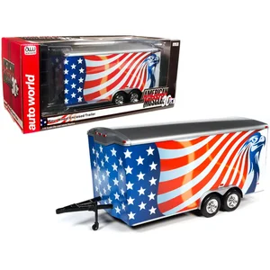 This 1/18 scale model car trailer features stunning American Flag graphics and is part of the "American Muscle 30th Anniversary" collection by Autoworld. Perfect for enthusiasts, this model replicates a classic enclosed trailer design tailored for scale model cars.