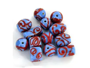 This vibrant mix of swirled glass beads features a beautiful combination of red and blue colors. Each bead measures approximately 11mm x 20mm and comes in assorted shapes, making it perfect for a variety of crafting projects.