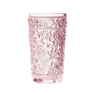 Leadingware Group Inc AS-1012P Pink Acrylic Paisley Hi-Ball Glasses - Set of 4, 17 oz