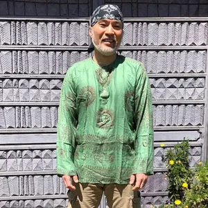 Jayli Imports AS108MShirt:AS108-grn-L Lightweight Cotton Ram Nam 3-Button Long Sleeve Kurta