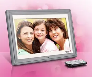 Presenting the stunning 10-Inch Silver Digital Photo Frame, designed in collaboration with the Susan G. Komen foundation. This elegant digital frame allows you to showcase your cherished memories with clarity and style. Perfect for display on any desk, shelf, or wall.
