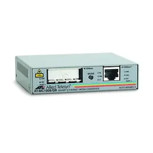 The Allied Telesis 1000MB Gigabit Media Converter is designed to extend the range of your network while providing seamless compatibility with existing systems. It features a robust design, ensuring reliable data transmission over long distances. With an RJ-45 connector, this media converter is ideal for networking environments that require high-speed connections for data transfer and enhanced performance.