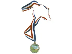 Celebrate sports achievements with our Customizable Enamel Medal for Tennis. This vibrant 2" medal displays a dynamic tennis player in action, making it a perfect recognition item for players of all levels. The medal comes suspended from a stylish 30" striped ribbon, ensuring a grand display during award ceremonies.