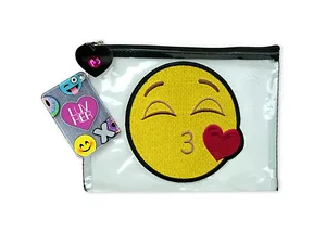 Show off your love for Emoticons with the Luv Her Emoticon Kiss Makeup and Pencil Case. This versatile accessory is perfect for storing your everyday beauty essentials or can double as a pencil case for school. Its compact size makes it portable and easy to store, ensuring you can carry your essentials wherever you go.