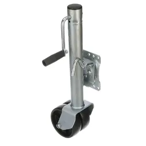 This fold-up trailer jack features a 1500 lb capacity and is designed for easy storage by swinging up and out of the way. It's specifically engineered to fit 3 inch x 5 inch tongues, offering a reliable solution for your towing needs. The jack comes equipped with a sidewind handle for convenient operation and includes two durable 6 inch diameter polypropylene wheels for enhanced mobility.