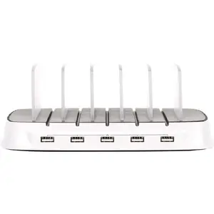 The Griffin PowerDock 5 is a versatile charging station designed to efficiently charge up to five devices simultaneously. With its sleek white and black design, it complements any home or office environment. Whether you have smartphones, tablets, or other USB-powered devices, this charging dock provides quick and convenient power for all of them.