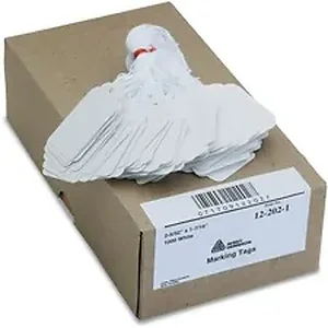 Your system of organization is always on the mark with these easy-to-use Marking Tags. Each white tag offers a smooth surface for writing to make it simple to label items with important information. Organizing items for sale, distribution, storage or other purpose becomes a cinch. The cardstock tags come strung with a loop of white cotton/polyester twine that's already knotted at the end for easy attachment and removal of the tag so your items are conveniently labeled without the need for sticky adhesive.