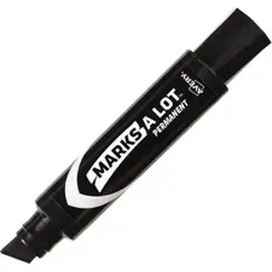 Jumbo-sized, permanent ink marker with giant 2/3" chisel tip covers large areas easily in big, broad, smooth strokes. Marker writes on almost anything: cardboard, illustration board, concrete, wood, plastic, metal and many other surfaces. It is great for making eye-catching signs and posters. Extra-large barrel houses a generous, long-lasting ink supply. Permanent ink dries fast. Rich, dark, low-odor ink is also water-resistant and rub-resistant. Generous nontoxic ink supply lasts a long time. ACMI certified ink conforms to ASTM D4236.